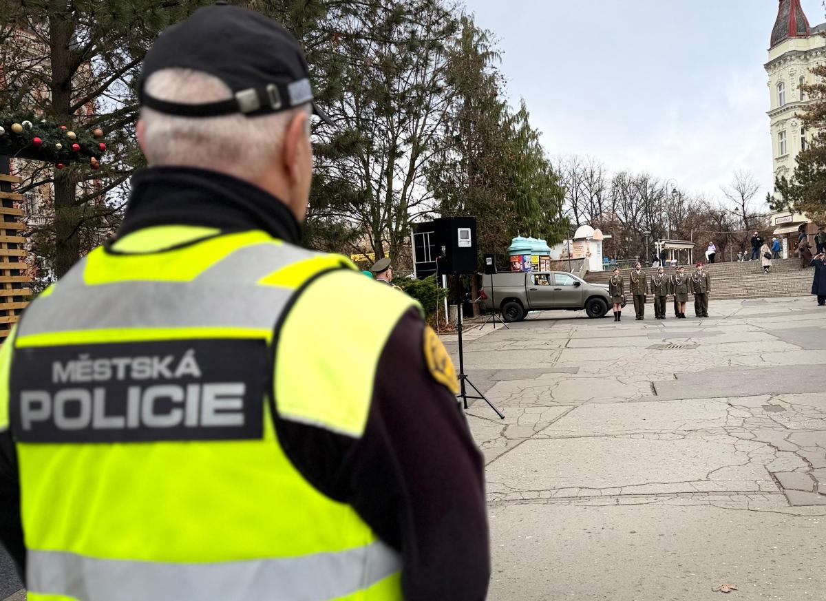 Proto se dnes dopoledne na prostranství před hotelem Thermal v Karlových Varech sešli zástupci armády, hasičského záchranného sboru, Policie ČR i váleční veteráni, aby společně uctili památku padlých. A i letos karlovarští strážníci dohlíželi na poklidný průběh.
