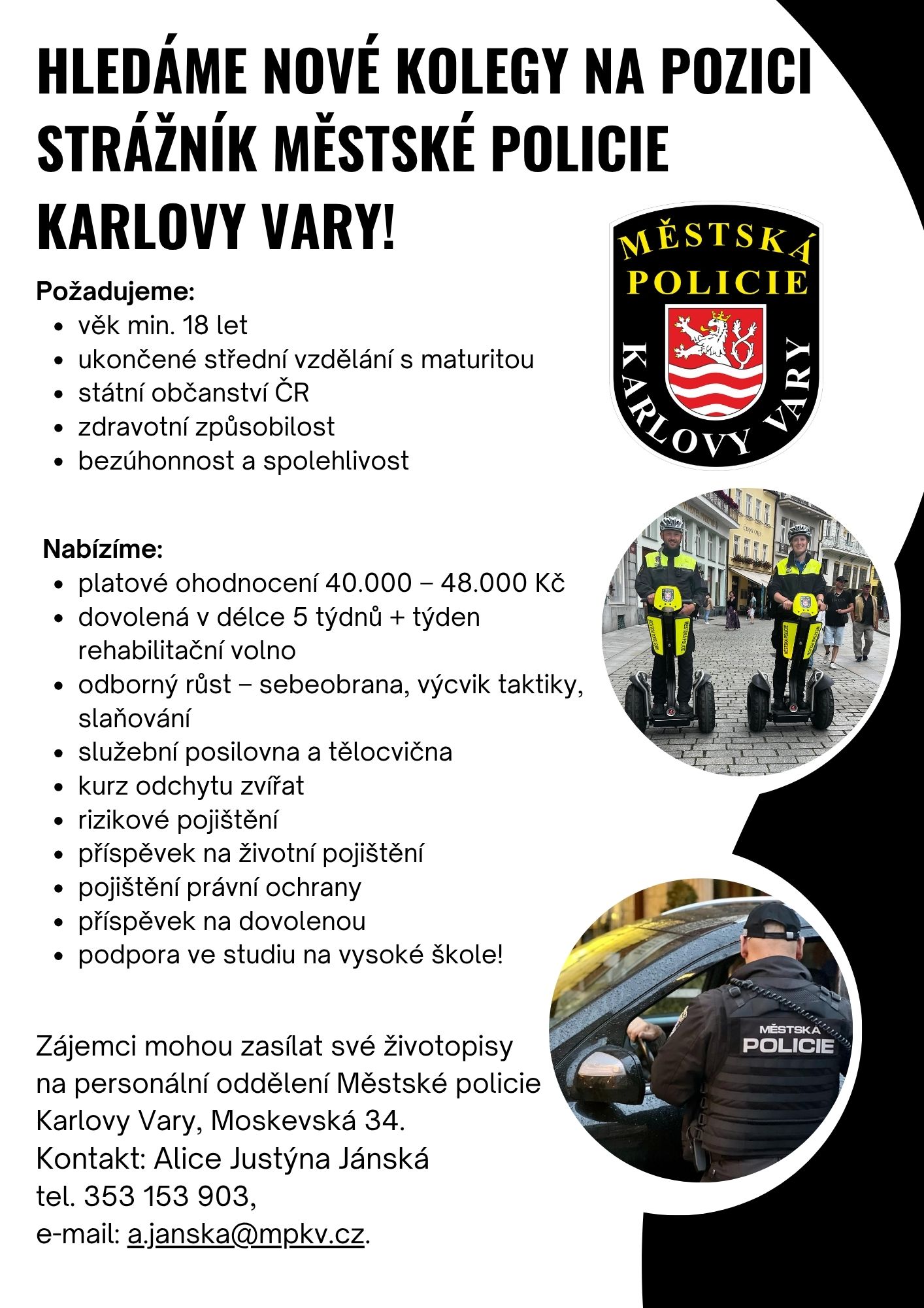 Zájemci mohou zasílat své životopisy na personální oddělení Městské policie Karlovy Vary, Moskevská 34.