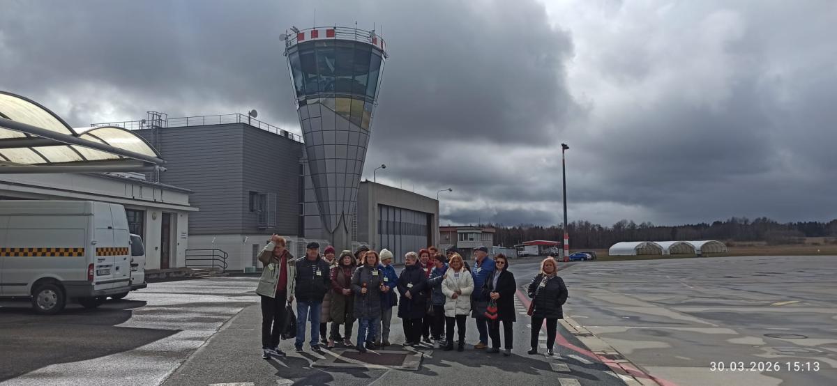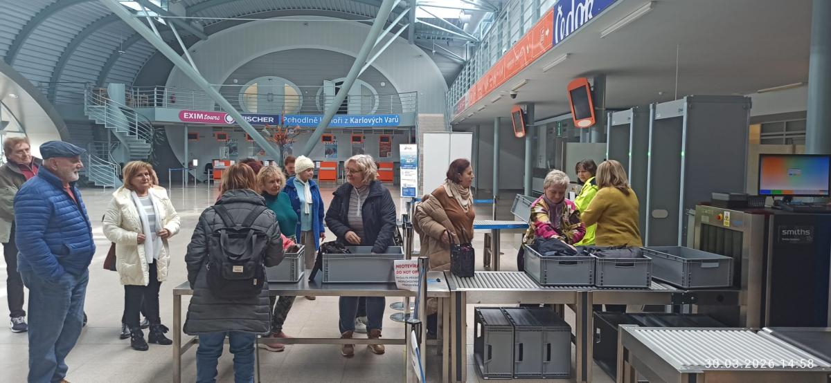 Druhá exkurze směřovala na karlovarské letiště. Senioři se seznámili s tím, co je čeká, pokud se rozhodnou vycestovat za sluncem. Prošli si prostory odbavení zavazadel, vyzkoušeli si řádnou bezpečnostní kontrolou a podívali se na vzletovou a přistávací plochu. Součástí prohlídky byla také historie letiště, informace o jeho provozu a plánech do budoucna.