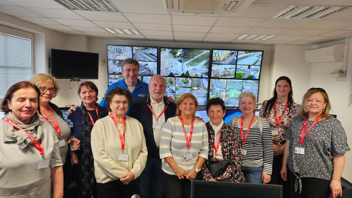Závěrečná návštěva patřila operačnímu a informačnímu středisku městské policie, které sídlí v budově hasičského záchranného sboru nedaleko krajského úřadu. Právě sem směřují všechny vaše telefonické dotazy, stížnosti a oznámení občanů a odsud jsou koordinovány výjezdy hlídek. Strážníci seniorům přiblížili činnost operátorského pultu napojeného na střežené objekty a vysvětlili, co se děje při zaznamenání podezřelého pohybu. Velký zájem vzbudilo také technické vybavení, zejména kamerové systémy. Senioři měli mnoho dotazů a strážnici na ně velmi ochotně odpovídali.