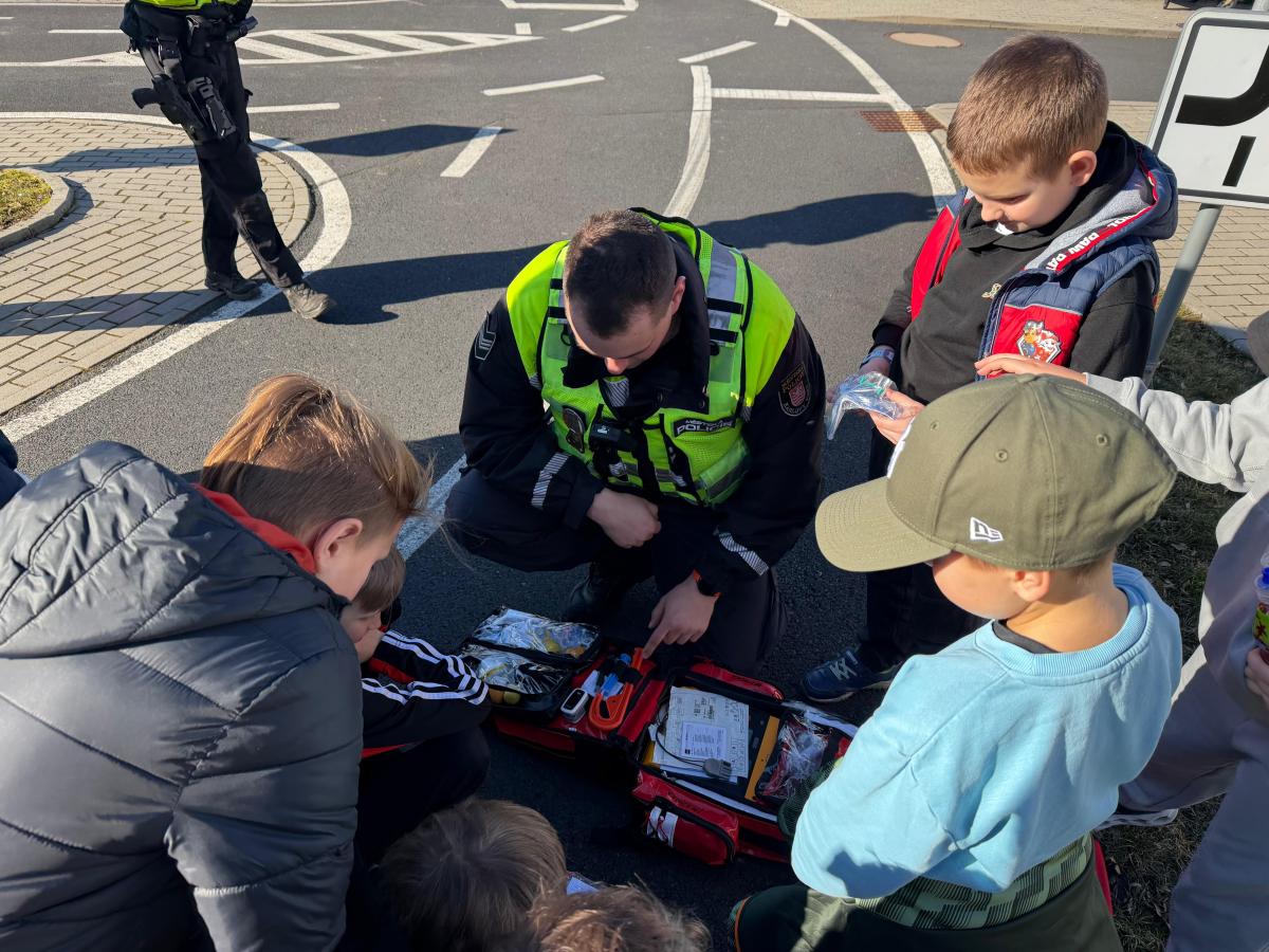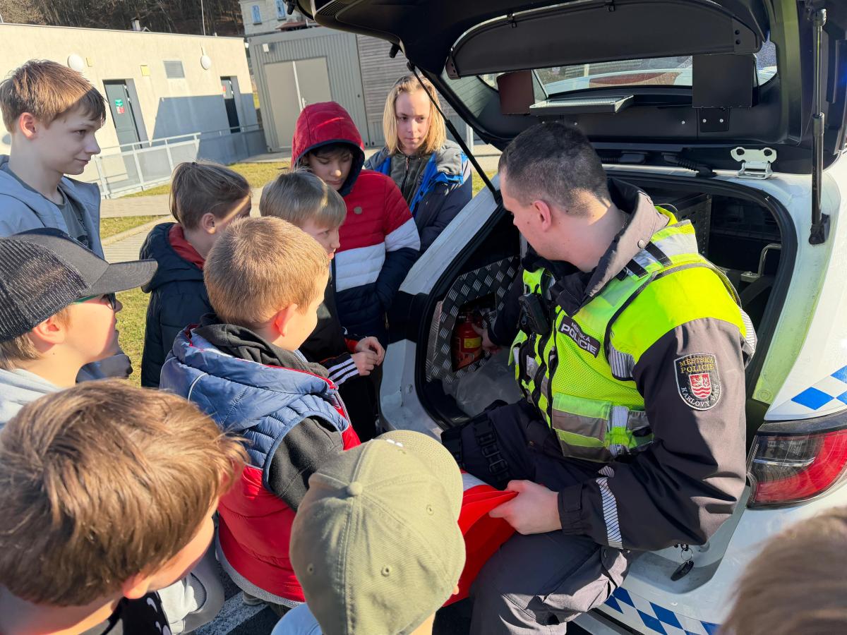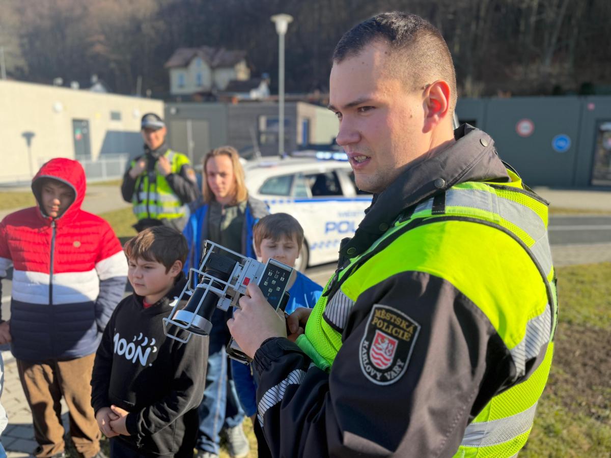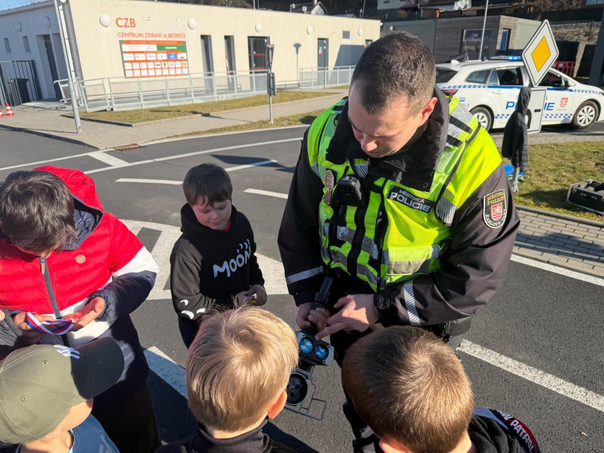 Mladí strážníci se včera zaměřili na problematiku dopravy ve městě. Společně s hlídkou, která za nimi dorazila do Světa záchranářů, si povídali nejen o nejčastějších dopravních přestupcích, ale také si připomněli pravidla, která musí dodržovat všichni účastníci silničního provozu. Součástí setkání bylo i nahlédnutí do služebního vozidla, kde mají strážníci vybavení důležité pro výkon služby jako je např. zdravotnický batoh s přístrojem AED, hasicí přístroj, jednorázové rukavice, nebo potřeby pro odchyt psů. Strážníci dětem také vysvětlili, že správné chování v dopravě nechrání jen je samotné, ale i ostatní a pomáhá předcházet nehodám. Hlídka s sebou přivezla radar určený k měření rychlosti. Děti si ho mohly zblízka prohlédnout a během praktické ukázky jim byla změřena i rychlost jejich běhu. Tato činnost se pro velký zájem několikrát opakovala.