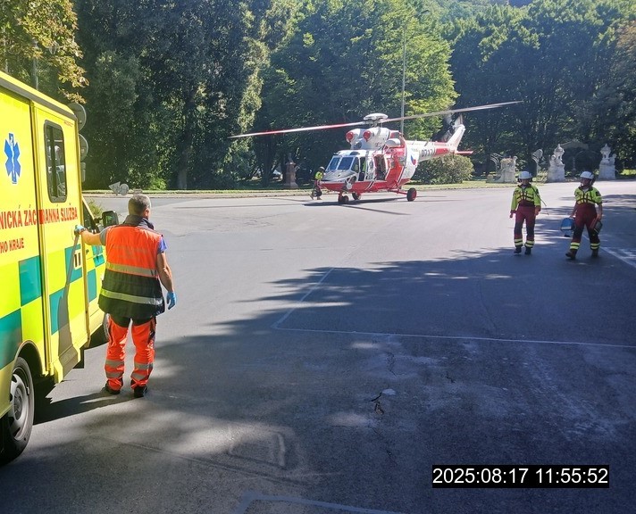 Včera okolo půl dvanácté dopoledne byli karlovarští strážníci vysláni na ulici Stará Louka, kde mělo u jednoho z hotelů dojít k pádu ženy z okna. Strážníci po příjezdu na místo spatřili skupinku osob stojících kolem ženy, která ležela na chodníku. V době přítomnosti strážníků byla sice žena při vědomí a reagovala na hlasové podněty, ale obě nohy v oblasti nad kotníky měla zlomené. Jelikož vlivem pádu mohlo dojít i k poranění páteře, kontrolovala hlídka pouze její zdravotní stav a vyčkala do příjezdu posádky záchranné služby, která dorazila na místo současně s policisty. Záchranáři si zraněnou ženu ihned převzali k ošetření, a aby jejich zásah mohl na ulici plné lidí proběhnout nerušeně, zajistili strážníci místo proti vstupu nepovolaných osob. Po prvotním ošetření bylo lékařem rozhodnuto, že bude zraněná žena sanitou převezena na křižovatku ulic Slovenská a U Imperiálu, kde je dostatek místa pro přistání helikoptéry. Tam hlídka pomohla záchranářům dvaapadesátiletou pacientku přeložit na nosítka letecké záchranné služby a po odletu helikoptéry místo opustila. Okolnostmi pádu ze třetího patra hotelu se zabývají policisté.