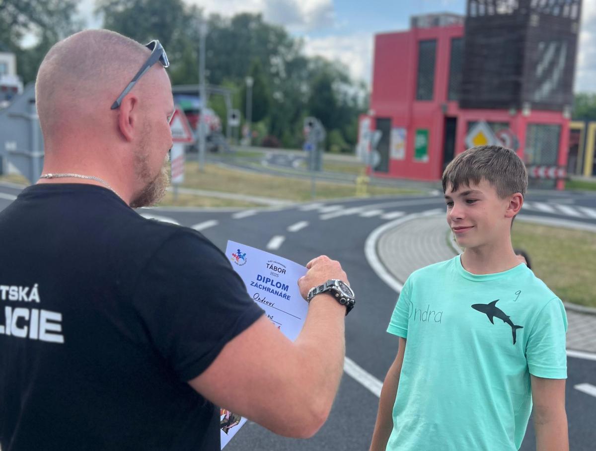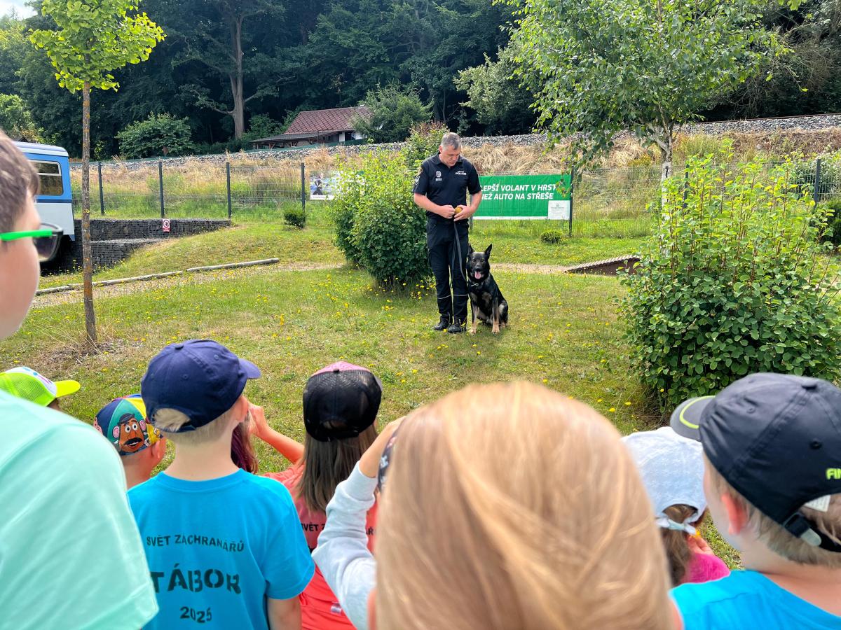 Během letních měsíců, července a srpna, proběhly ve Světě záchranářů tři turnusy příměstských táborů pro děti. Od pondělí do pátku se ve vzdělávacím centru vystřídali záchranáři, policisté, vojáci, hasiči a strážníci, aby dětem zábavnou formou předali informace, které se jim v životě budou hodit. S karlovarskými strážníky si kluci a holky zopakovali význam dopravních značek a své znalosti si pak vyzkoušeli i v praxi jízdou na kole či koloběžce po dopravním hřišti a nechyběla ani jízda zručnosti. Děti si také mohly vyzkoušet sílu svých plic, když střílely z narkotizační foukačky na cíl a také rychlost v běhu za pomoci radaru. Součástí byla také ukázka práce psovoda se služebním psem a zadržení pachatele, který se ukryl v centru a zasáhnout tak museli malí účastníci tábora, kteří lumpa našli a předali hlídce. Věříme, že si děti z připraveného programu odnesly nejen další znalosti, ale také zážitky, na které se nezapomíná! Tak se budeme těšit zase příští rok!
