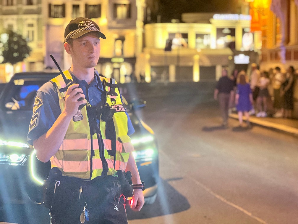 Po půl jedné v noci dorazila první stížnost na rušení nočního klidu hlasitou hudbou a křikem z párty stanů v blízkosti hotelu Thermal. Strážníci, kteří vyrazili na místo, kontaktovali odpovědnou osobu a ta sjednala nápravu.