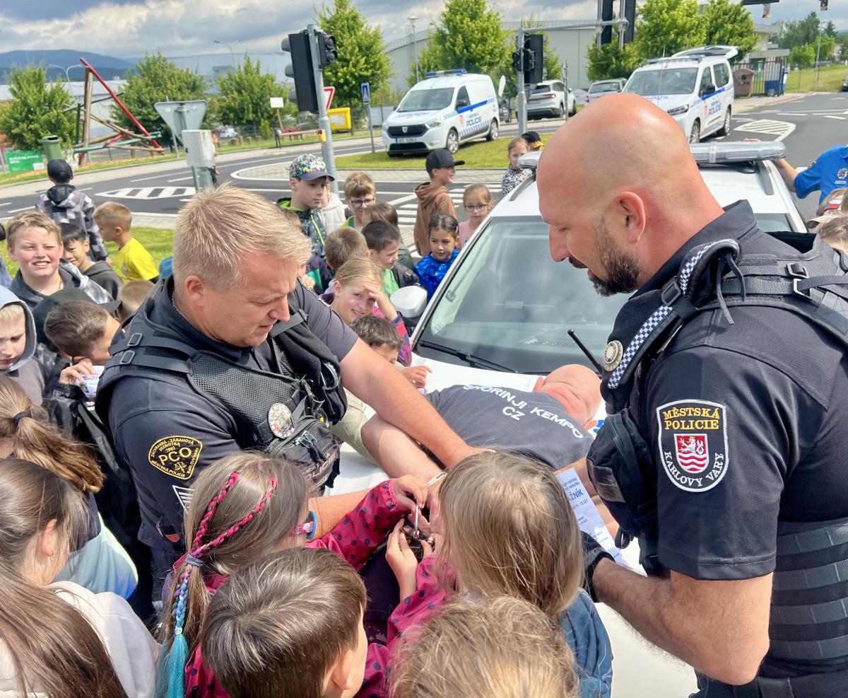 V pondělí proběhl v Centru zdraví a bezpečí další Sportovní den se strážníkem Pavlem, kterého se zúčastnily téměř dvě stovky žáků třetích ročníků z pěti karlovarských základních škol. A stejně jako v letech předešlých i letos školáky ve znalostech a dovednostech prověřil připravený program. Na dvanácti stanovištích plnili kluci a holky úkoly zaměřené třeba na znalost dopravních značek, povinné výbavy kola a také poskytování první pomoci. Své dovednosti pak ukázali při hodu létajícím talířem, skákání v pytli nebo skládání puzzlí. Nechybělo ani poměřování sil v přetahování lana, vyzkoušeli si manipulaci s foukačkou i chůzi s „opileckými“ či „drogovými“ brýlemi. Dopoledne plné pohody se však pokusil narušit hlučný opilý darebák a tak bylo třeba zásahu strážníků, kteří si s ním za pomoci dětí velmi rychle poradili a poté co odjel služebním autem neznámo kam, mohli všichni pokračovat v plnění úkolů. Za dětmi dorazil také psovod se služebním psem Naty, jejich ukázka výcviku poslušnosti a zadržení pachatele byla odměněna velkým potleskem. Nesmíme zapomenout na maskota strážníka Pavla, který děti po celou dobu podporoval a rozdával úsměv na všechny strany.
